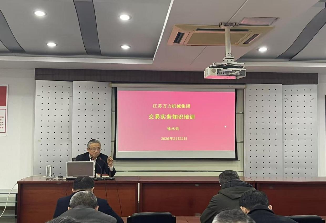 为能够识别企业生产经营中的经营风险,有效避免交易不当引发的企业损失,2026年2月22日上午,集团公司举办了交易实务专项培训。 公司副总经理徐永钧担任主讲讲师,集团公司全体中层及以上管理人员,各公司销售人员、采购人员、财务人员等关键岗位人员参加培训。